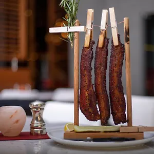 Indulge in a vibrant dining experience at Red Salt by David Burke, located at the 4-star Le Meridien Charlotte. The restaurant offers a menu of modern American cuisine, including innovative entrees featuring cuts of steak prepared using the chef's patented Himalayan sea-salt dry-aging technique. For breathtaking panoramic views of the Charlotte skyline, guests can head to Cloud Bar by David Burke, the property's rooftop bar. This unique gathering spot in the city center serves signature cocktails and light bites crafted by world-renowned celebrity chef David Burke. Adding further culinary options, the hotel also features two additional onsite restaurants, ensuring guests have a variety of dining choices during their stay.